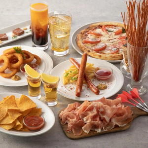 ダーツのお供にピッタリのドリンクは120種以上!銘柄ウイスキーで作るハイボールやワインなど種類豊富に取り揃えております。フィンガーフードもバラエティー豊かに揃えました。