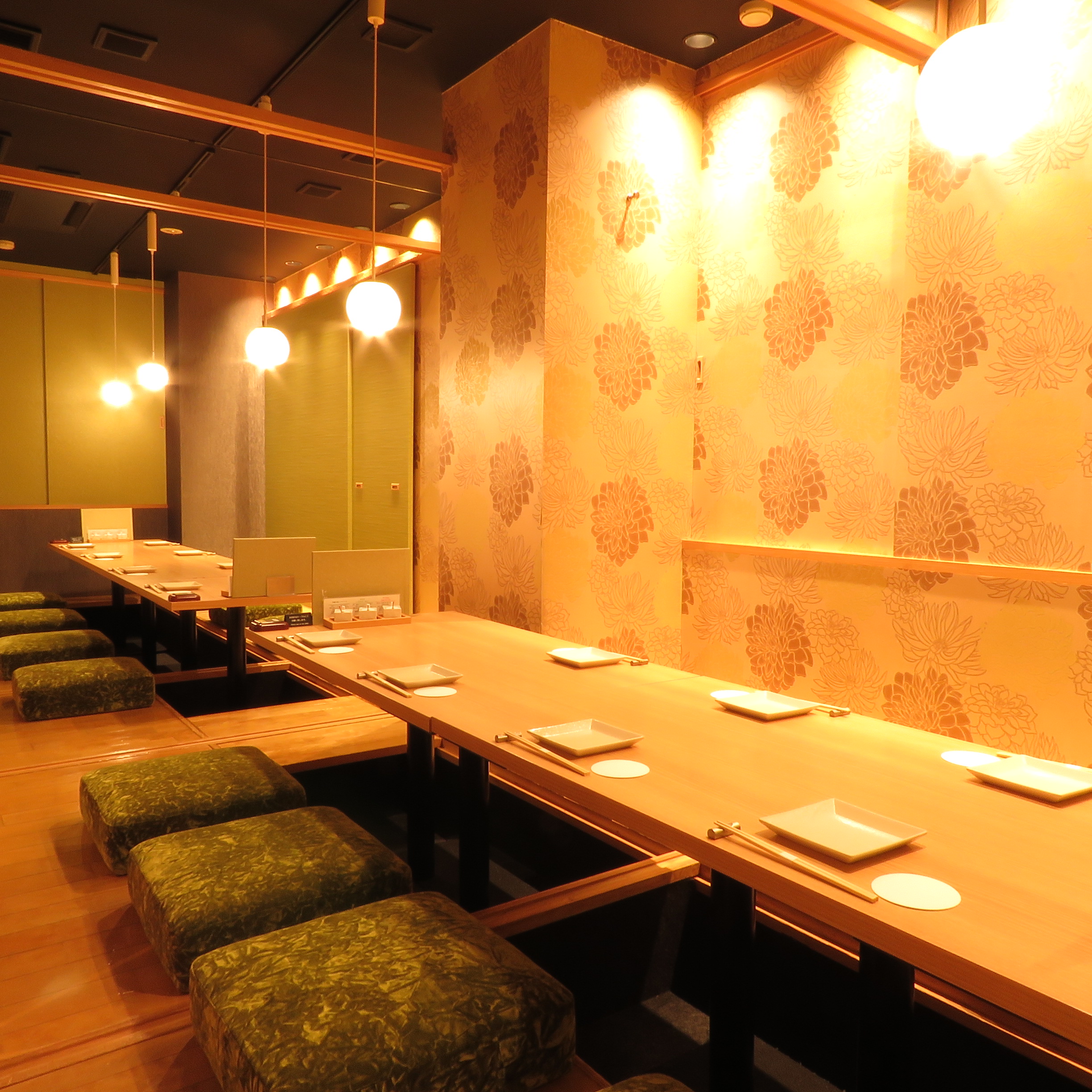 掘りごたつや椅子がメインの和モダン個室でゆとりの時間を