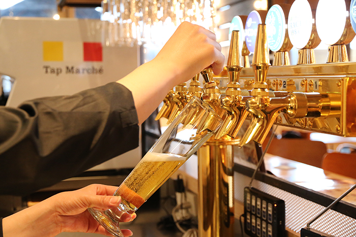 「ビールを入れるときのこだわりとしては、タップから空気に触れないよう、グラスにくっつけて入れています。それと、グラスが手の熱で温まってもいけないので、持ち方もなるべく手に接する面積が小さくなるようにしていますね。あと、炭酸の強さは普通のビールの半分くらいのものが多くなっています。それぞれのビールに応じて、一番美味しく飲めるよう調整しているんです」
