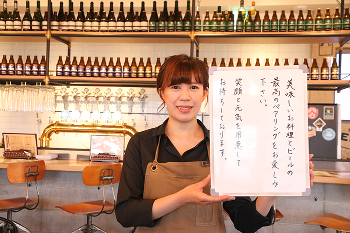 このお店で店長として活躍しているのが、山本美咲さん。ビールを愛し、こだわりと情熱を持って、お客様に自信の一杯をおすすめしています。
